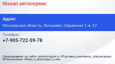 Nissan, автосервис по адресу Московская область, Хотьково, Овражная 1-я, 17 в дальнейшем Организация, размещена в следующих категориях: