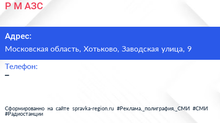 P & M, АЗС по адресу Московская область, Хотьково, Заводская улица, 9 в дальнейшем Организация, размещена в следующих категориях: