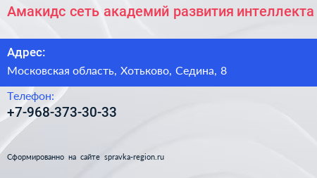 Амакидс, сеть академий развития интеллекта по адресу Московская область, Хотьково, Седина, 8 в дальнейшем Организация, размещена в следующих категориях: