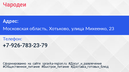 Чародеи по адресу Московская область, Хотьково, улица Михеенко, 23 в дальнейшем Организация, размещена в следующих категориях: