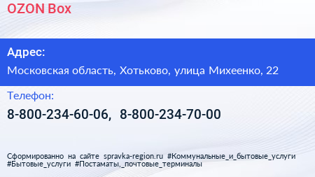 OZON Box по адресу Московская область, Хотьково, улица Михеенко, 22 в дальнейшем Организация, размещена в следующих категориях: