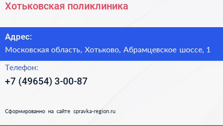 Хотьковская поликлиника по адресу Московская область, Хотьково, Абрамцевское шоссе, 1 в дальнейшем Организация, размещена в следующих категориях: