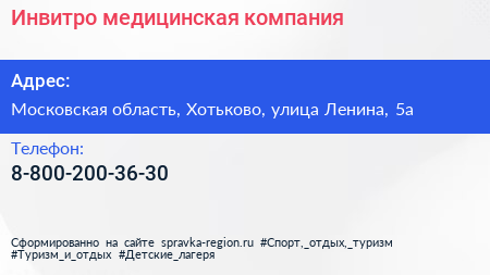 Инвитро, медицинская компания по адресу Московская область, Хотьково, улица Ленина, 5а в дальнейшем Организация, размещена в следующих категориях: