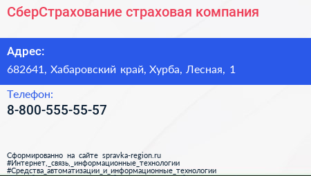 СберСтрахование, страховая компания по адресу 682641, Хабаровский край, Хурба, Лесная, 1 в дальнейшем Организация, размещена в следующих категориях: