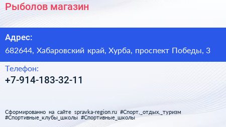 Рыболов, магазин по адресу 682644, Хабаровский край, Хурба, проспект Победы, 3 в дальнейшем Организация, размещена в следующих категориях: