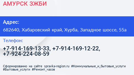 АМУРСК-ЗЖБИ по адресу 682640, Хабаровский край, Хурба, Западное шоссе, 55а в дальнейшем Организация, размещена в следующих категориях: