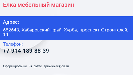 Ёлка, мебельный магазин по адресу 682643, Хабаровский край, Хурба, проспект Строителей, 14 в дальнейшем Организация, размещена в следующих категориях: