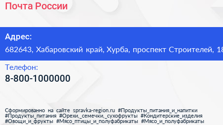 Почта России по адресу 682643, Хабаровский край, Хурба, проспект Строителей, 18 в дальнейшем Организация, размещена в следующих категориях: