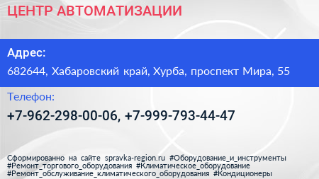 ЦЕНТР АВТОМАТИЗАЦИИ по адресу 682644, Хабаровский край, Хурба, проспект Мира, 55 в дальнейшем Организация, размещена в следующих категориях: