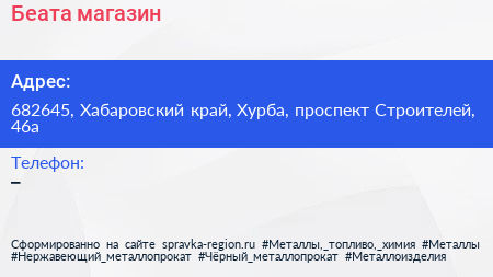 Беата, магазин по адресу 682645, Хабаровский край, Хурба, проспект Строителей, 46а в дальнейшем Организация, размещена в следующих категориях: