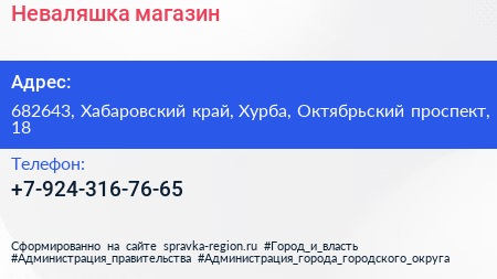 Неваляшка, магазин по адресу 682643, Хабаровский край, Хурба, Октябрьский проспект, 18 в дальнейшем Организация, размещена в следующих категориях: