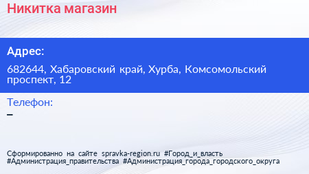 Никитка, магазин по адресу 682644, Хабаровский край, Хурба, Комсомольский проспект, 12 в дальнейшем Организация, размещена в следующих категориях: