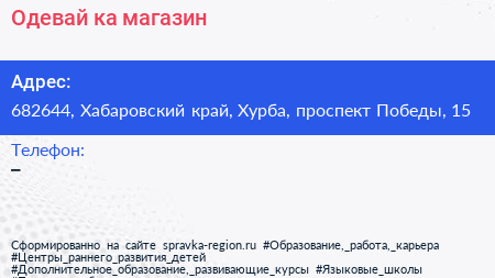 Одевай-ка, магазин по адресу 682644, Хабаровский край, Хурба, проспект Победы, 15 в дальнейшем Организация, размещена в следующих категориях: