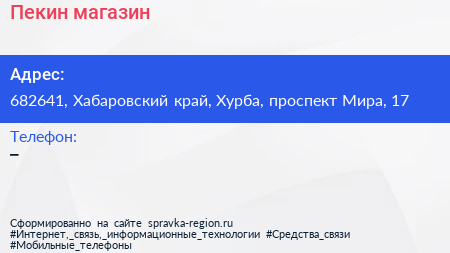 Пекин, магазин по адресу 682641, Хабаровский край, Хурба, проспект Мира, 17 в дальнейшем Организация, размещена в следующих категориях: