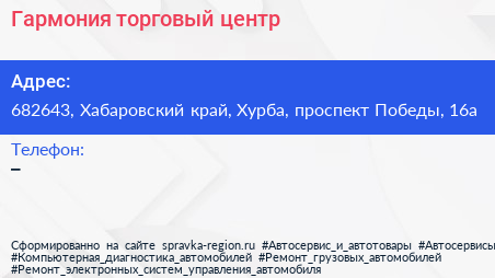 Гармония, торговый центр по адресу 682643, Хабаровский край, Хурба, проспект Победы, 16а в дальнейшем Организация, размещена в следующих категориях: