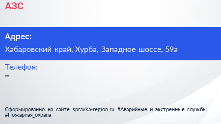 АЗС по адресу Хабаровский край, Хурба, Западное шоссе, 59а в дальнейшем Организация, размещена в следующих категориях: