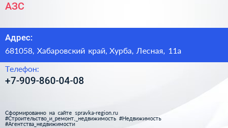 АЗС по адресу 681058, Хабаровский край, Хурба, Лесная, 11а в дальнейшем Организация, размещена в следующих категориях: