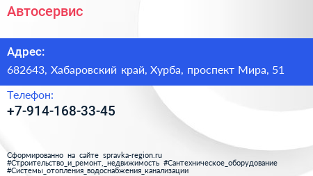 Автосервис по адресу 682643, Хабаровский край, Хурба, проспект Мира, 51 в дальнейшем Организация, размещена в следующих категориях:
