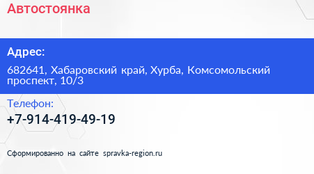 Адрес: Хабаровский край, Хурба, Комсомольская, 10