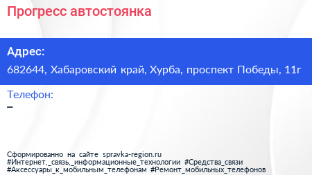 Прогресс, автостоянка по адресу 682644, Хабаровский край, Хурба, проспект Победы, 11г в дальнейшем Организация, размещена в следующих категориях: