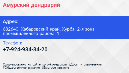 Амурский дендрарий по адресу 682640, Хабаровский край, Хурба, 2-я зона промышленного района, 1 в дальнейшем Организация, размещена в следующих категориях: