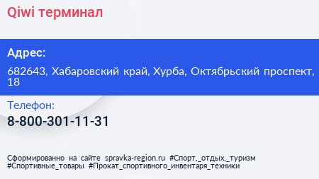 Qiwi, терминал по адресу 682643, Хабаровский край, Хурба, Октябрьский проспект, 18 в дальнейшем Организация, размещена в следующих категориях: