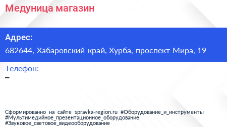 Медуница, магазин по адресу 682644, Хабаровский край, Хурба, проспект Мира, 19 в дальнейшем Организация, размещена в следующих категориях: