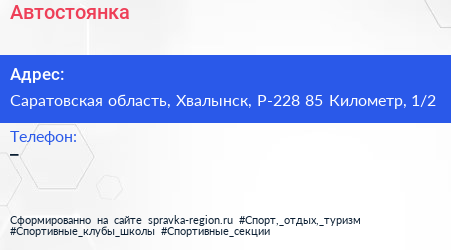 Адрес: Саратовская область, Хвалынск, Р-228 113 Километр, 1