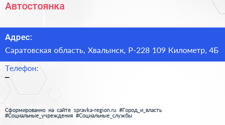 Автостоянка по адресу Саратовская область, Хвалынск, Р-228 109 Километр, 4Б в дальнейшем Организация, размещена в следующих категориях: