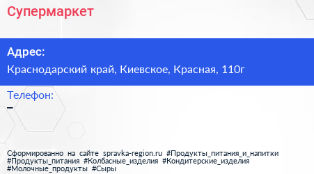 Супермаркет по адресу Краснодарский край, Киевское, Красная, 110г в дальнейшем Организация, размещена в следующих категориях: