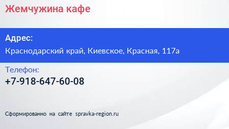 Жемчужина, кафе по адресу Краснодарский край, Киевское, Красная, 117а в дальнейшем Организация, размещена в следующих категориях: