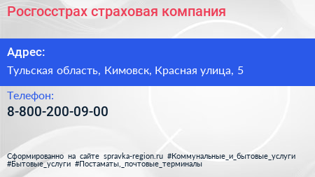 Росгосстрах, страховая компания по адресу Тульская область, Кимовск, Красная улица, 5 в дальнейшем Организация, размещена в следующих категориях: