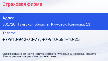 Страховая фирма по адресу 301720, Тульская область, Кимовск, Крылова, 11 в дальнейшем Организация, размещена в следующих категориях: