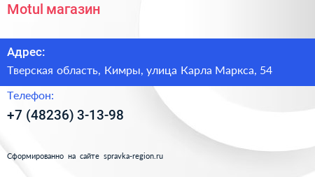 Motul, магазин по адресу Тверская область, Кимры, улица Карла Маркса, 54 в дальнейшем Организация, размещена в следующих категориях: