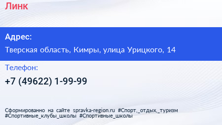 Линк по адресу Тверская область, Кимры, улица Урицкого, 14 в дальнейшем Организация, размещена в следующих категориях:
