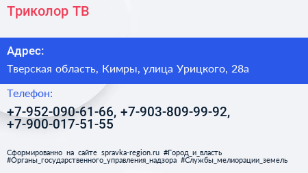 Триколор ТВ по адресу Тверская область, Кимры, улица Урицкого, 28а в дальнейшем Организация, размещена в следующих категориях:
