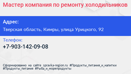 Мастер, компания по ремонту холодильников по адресу Тверская область, Кимры, улица Урицкого, 92 в дальнейшем Организация, размещена в следующих категориях: