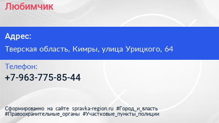Любимчик по адресу Тверская область, Кимры, улица Урицкого, 64 в дальнейшем Организация, размещена в следующих категориях: