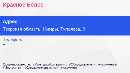 Красное & Белое по адресу Тверская область, Кимры, Туполева, 9 в дальнейшем Организация, размещена в следующих категориях: