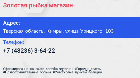 Золотая рыбка, магазин по адресу Тверская область, Кимры, улица Урицкого, 103 в дальнейшем Организация, размещена в следующих категориях:
