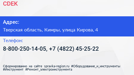 CDEK по адресу Тверская область, Кимры, улица Кирова, 4 в дальнейшем Организация, размещена в следующих категориях: