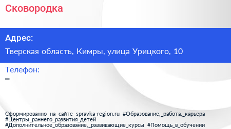 Сковородка по адресу Тверская область, Кимры, улица Урицкого, 10 в дальнейшем Организация, размещена в следующих категориях: