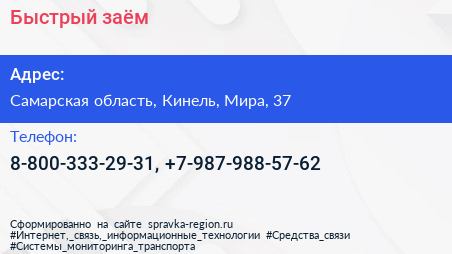 Быстрый заём по адресу Самарская область, Кинель, Мира, 37 в дальнейшем Организация, размещена в следующих категориях: