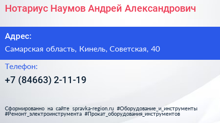 Нотариус Наумов Андрей Александрович по адресу Самарская область, Кинель, Советская, 40 в дальнейшем Организация, размещена в следующих категориях: