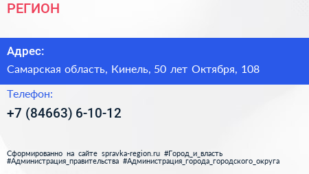 РЕГИОН по адресу Самарская область, Кинель, 50 лет Октября, 108 в дальнейшем Организация, размещена в следующих категориях: