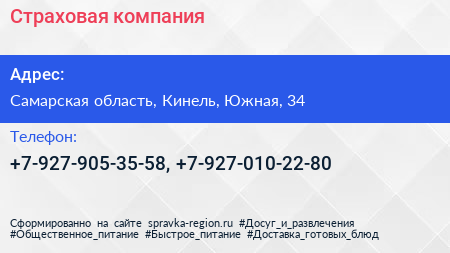 Страховая компания по адресу Самарская область, Кинель, Южная, 34 в дальнейшем Организация, размещена в следующих категориях: