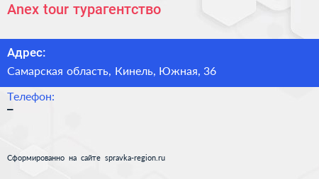 Anex tour, турагентство по адресу Самарская область, Кинель, Южная, 36 в дальнейшем Организация, размещена в следующих категориях: