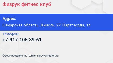 Физрук, фитнес-клуб по адресу Самарская область, Кинель, 27 Партсъезда, 1в в дальнейшем Организация, размещена в следующих категориях: