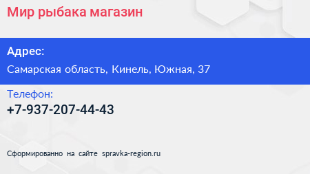 Мир рыбака, магазин по адресу Самарская область, Кинель, Южная, 37 в дальнейшем Организация, размещена в следующих категориях:
