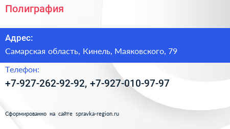 Полиграфия по адресу Самарская область, Кинель, Маяковского, 79 в дальнейшем Организация, размещена в следующих категориях: